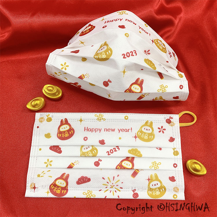興華款 醫用口罩成人 兔年新春福兔白(10入/包)【MD鋼印】