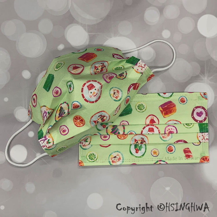 興華款 醫用口罩 成人 聖誕糖果綠 (10入/包)【MD】