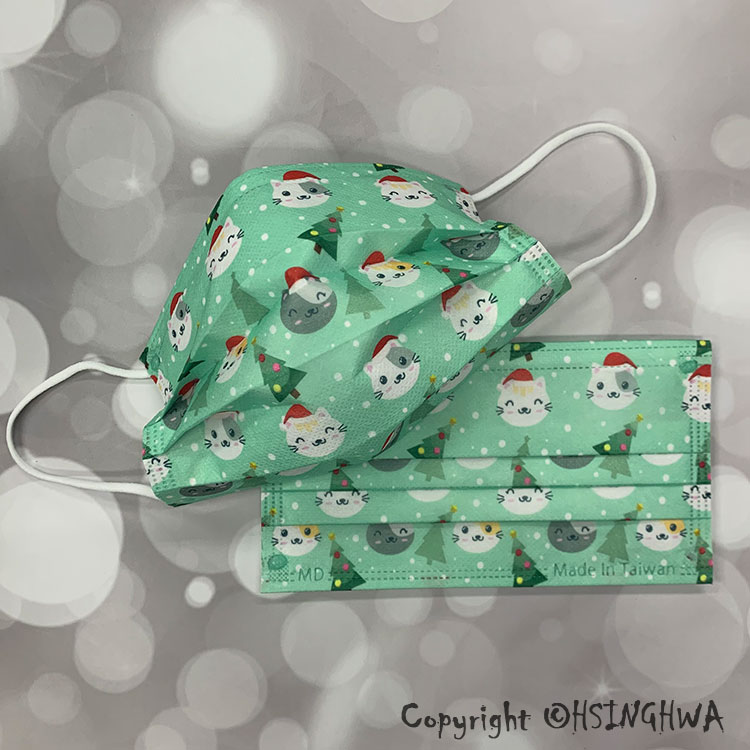 興華款 醫用口罩 成人 貓貓迎聖誕B款 (10入/包)【MD】