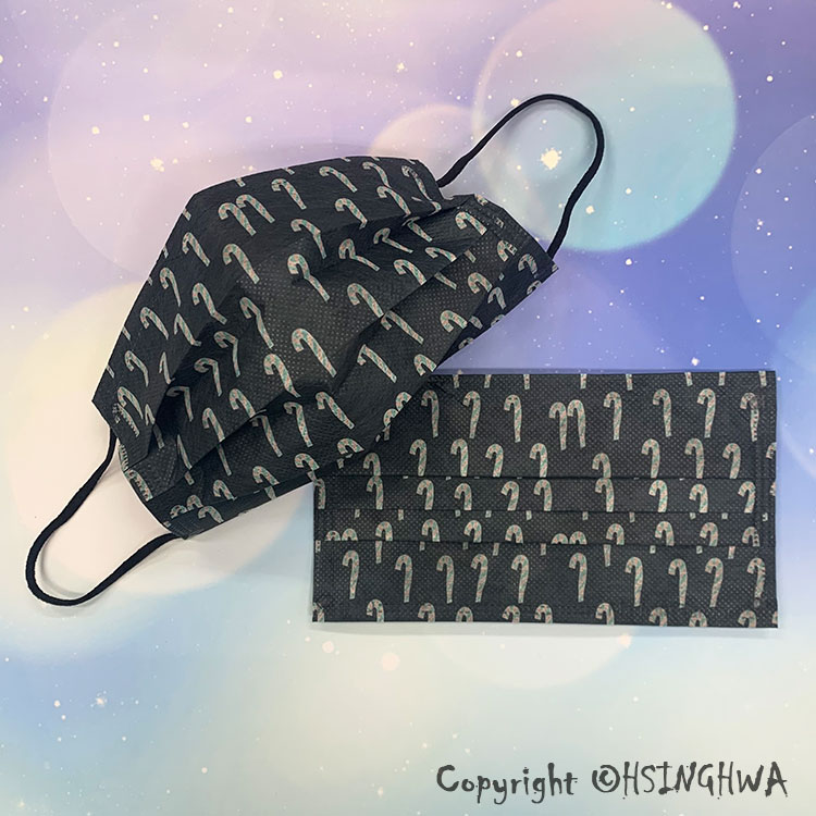 興華款 醫用口罩 成人 黑底拐杖糖 (10入/包)【MD】