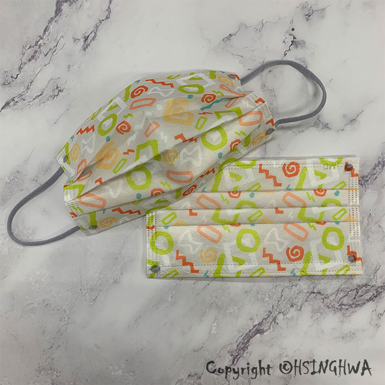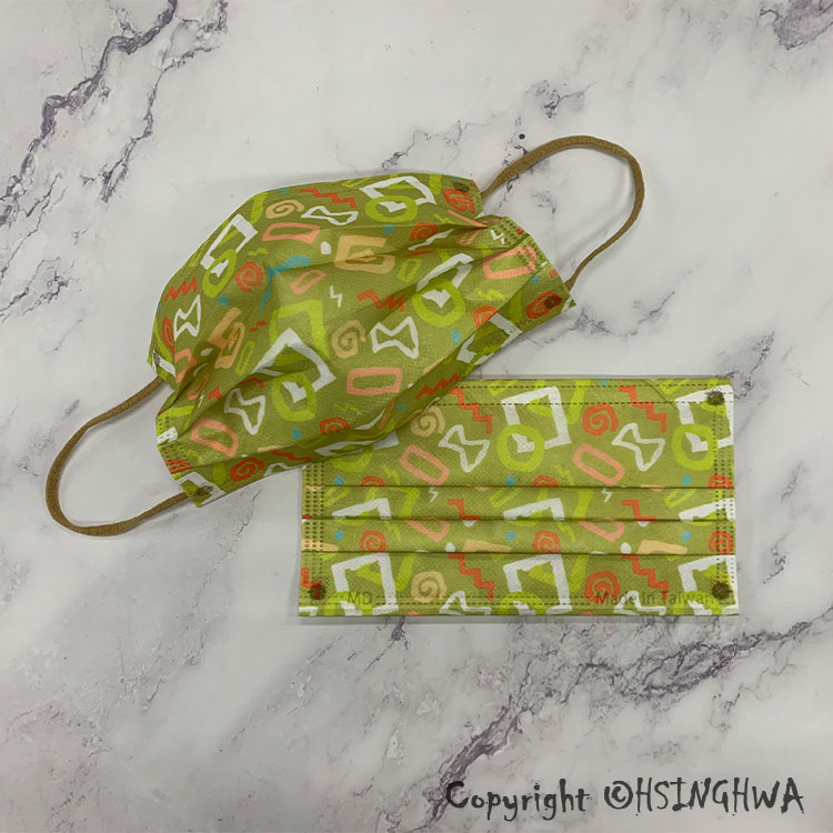 興華款 醫用口罩 成人 彩色塗鴉芥末綠 (10入/包)【MD】
