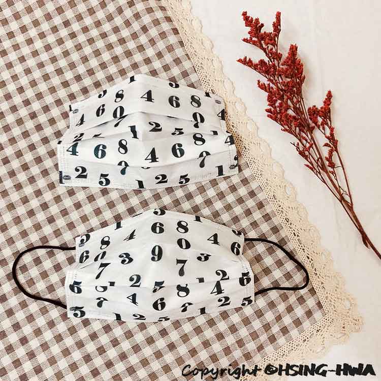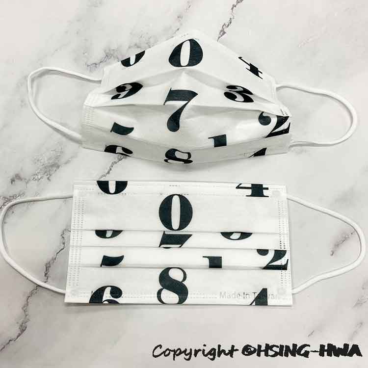 興華款 醫用口罩 成人 SOU‧SOU風 黑色數字白耳 (10入/包)【MD】