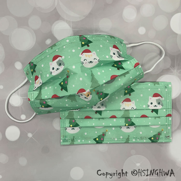 興華款 醫用口罩 成人 貓貓迎聖誕 (10入/包)【MD】