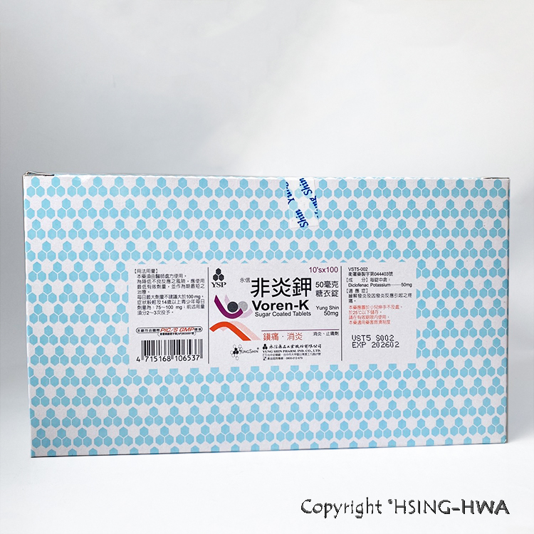 效近 VOREN-K 50MG (高) 永信 非炎鉀糖衣錠 1000顆/盒