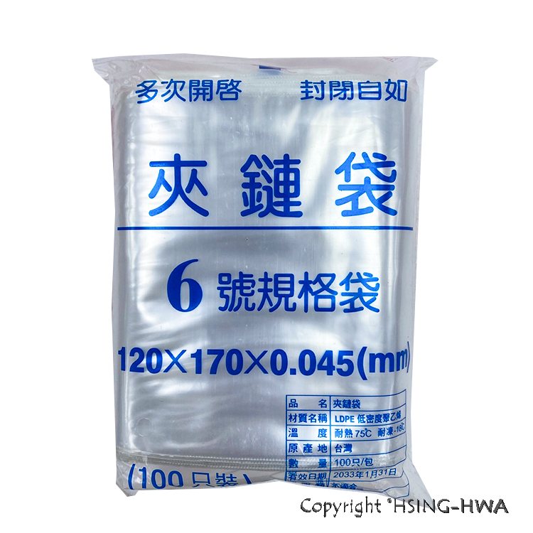 6號夾鏈袋 120x170x0.035 100入/包