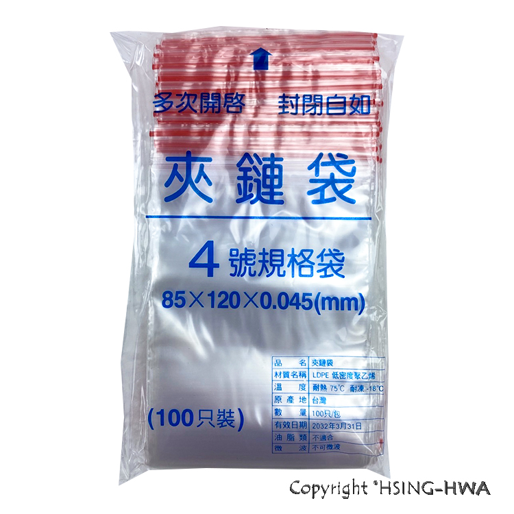 4號夾鏈袋 120x85x0.035 100入/包
