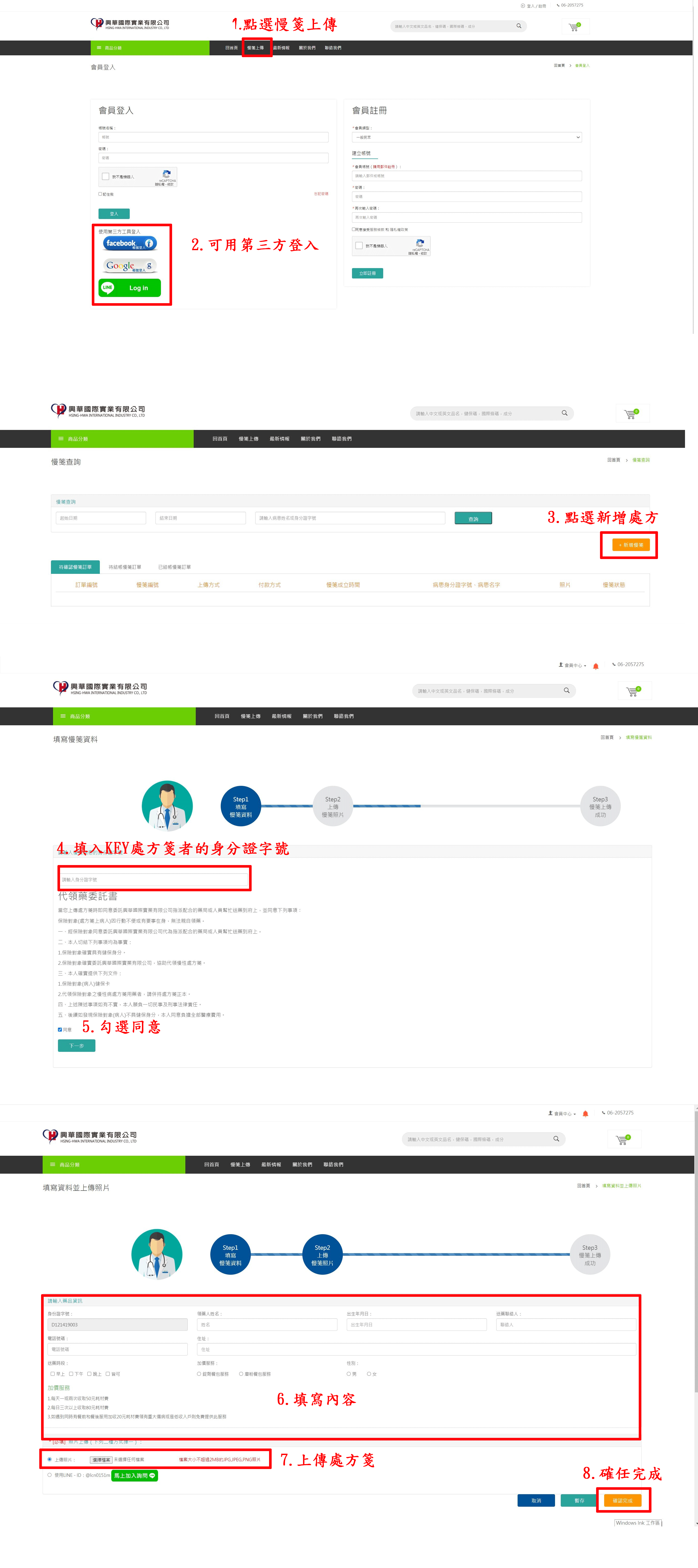 預約方式:將處方箋拍照上傳至興華國際實業有限公司官網。