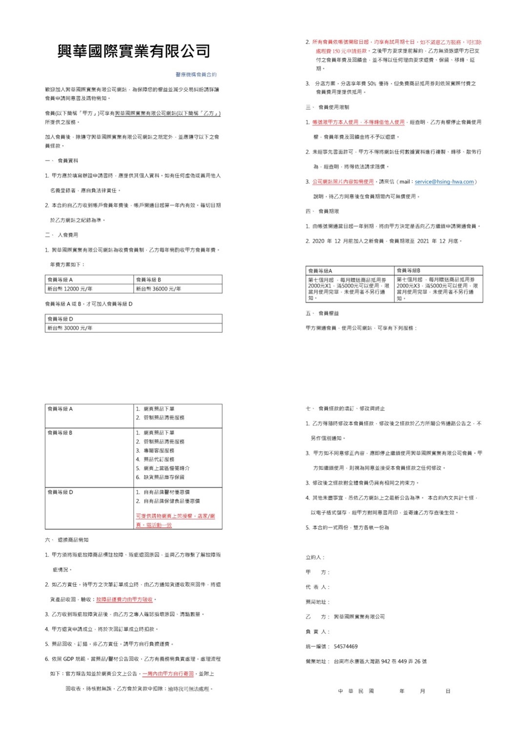 所有會員依帳號開啟日起,均享有試用期七日,如不滿意乙方服務,可扣除處理費 150 元申請退款。之後甲方要求提前解約,乙方無須返還甲方已支付之會員年費及回饋金,並不得以任何理由要求退費、保留、移轉、延期。